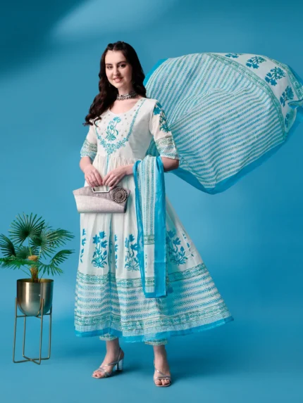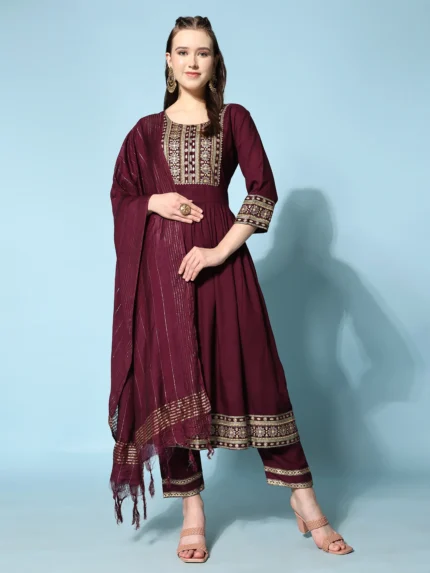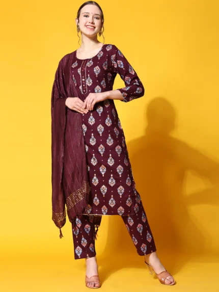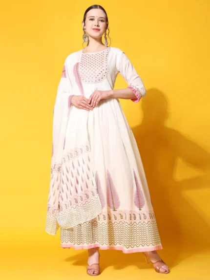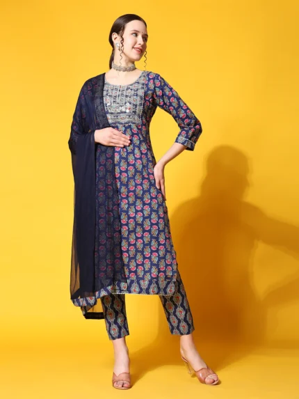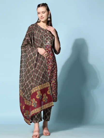 Ethnic Printed A-Line Kurta & Trouser With Dupatta