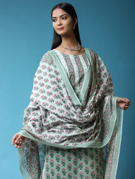 Ethnic Motifs Printed Pure Cotton Kurta with Trousers & Dupatta