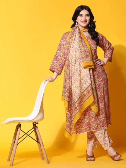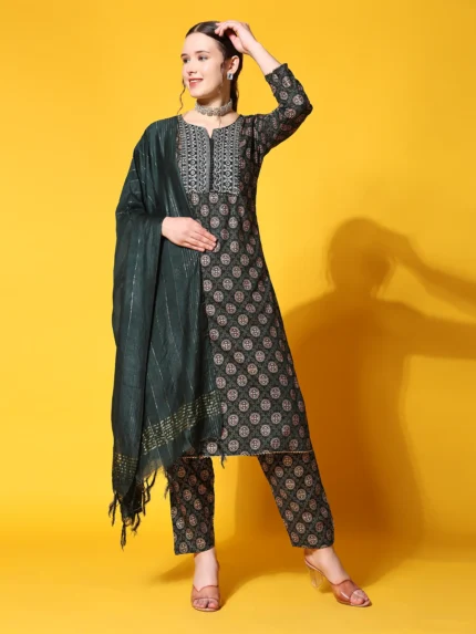 Ethnic Motifs Printed Regular Kurta with Trousers & With Dupatta
