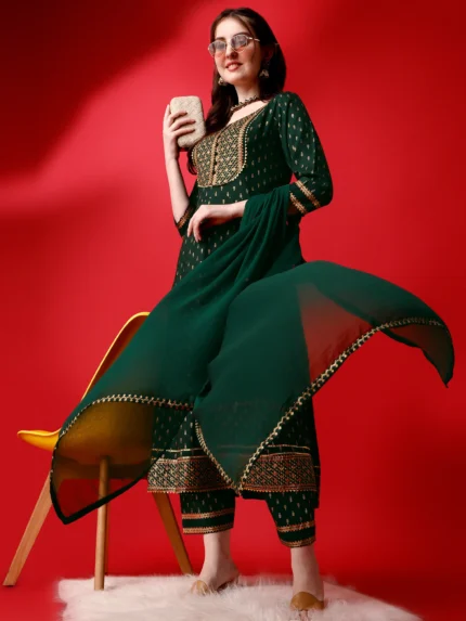 Ethnic Printed A-Line Kurta & Trouser With Dupatta
